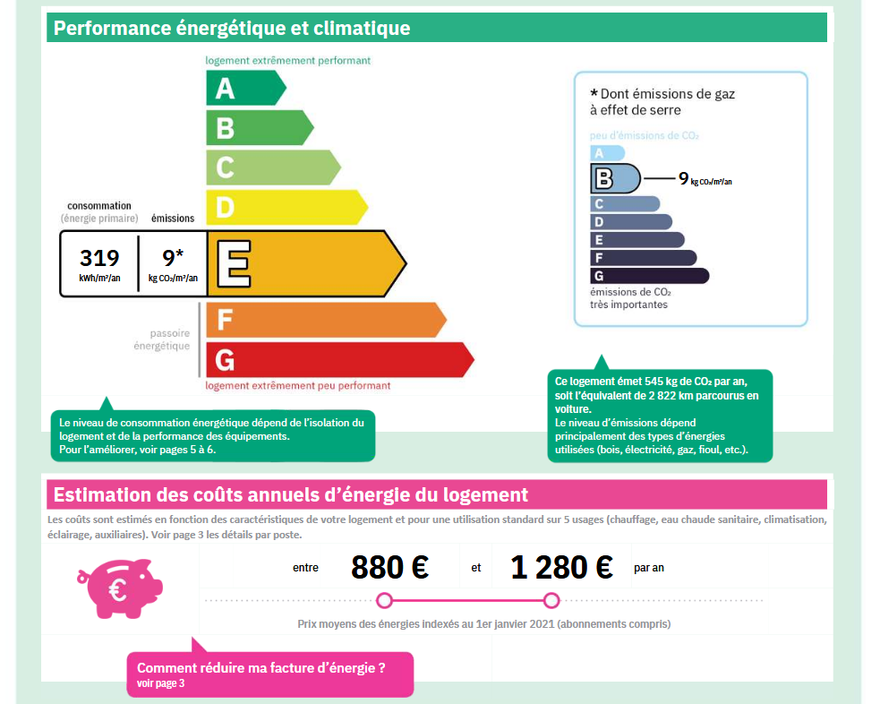 Consommations énergétiques - E - 319 kWh/m²/an.