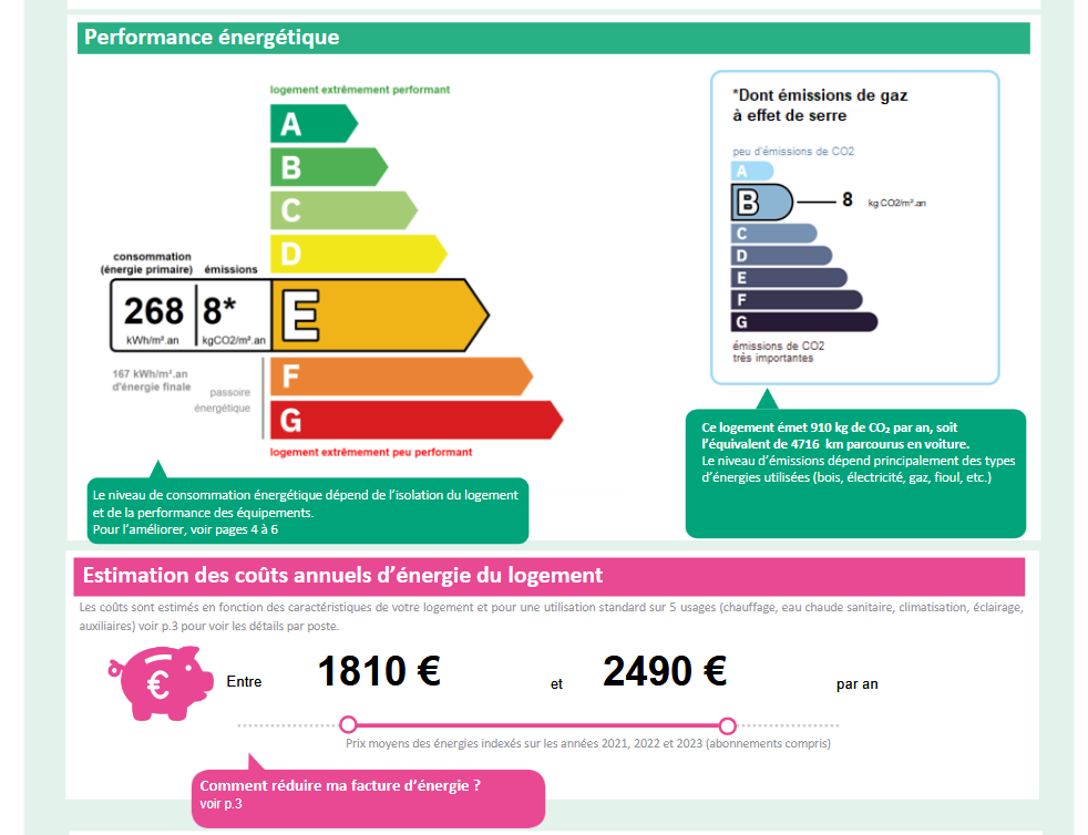 Consommations énergétiques - E - 268 kWh/m²/an.