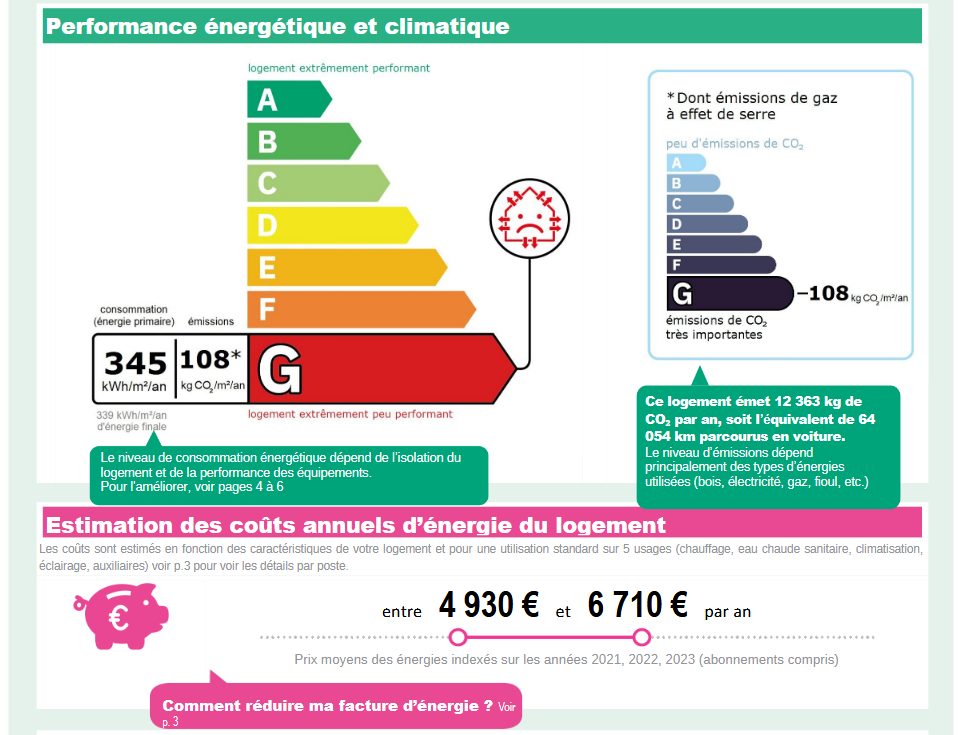 Consommations énergétiques - G - 345 kWh/m²/an.