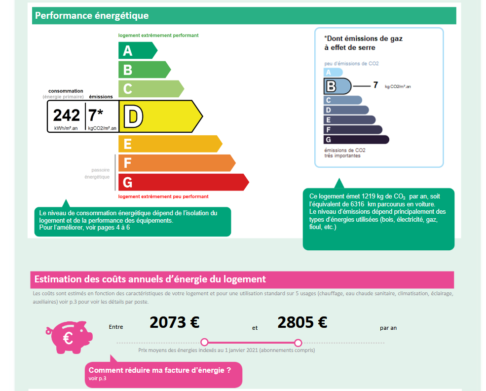 Consommations énergétiques - D - 242 kWh/m²/an.