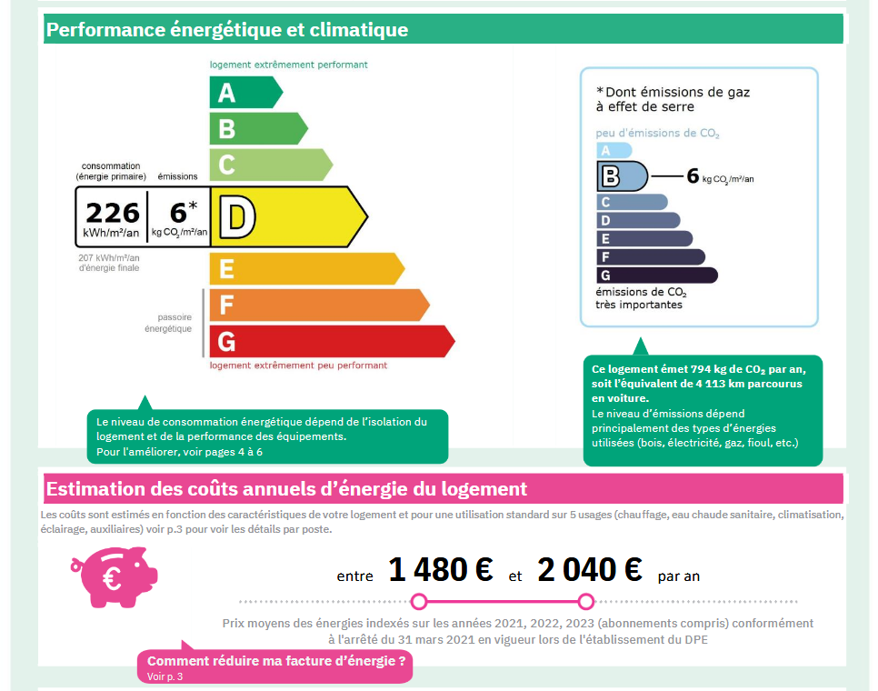 Consommations énergétiques - D - 226 kWh/m²/an.