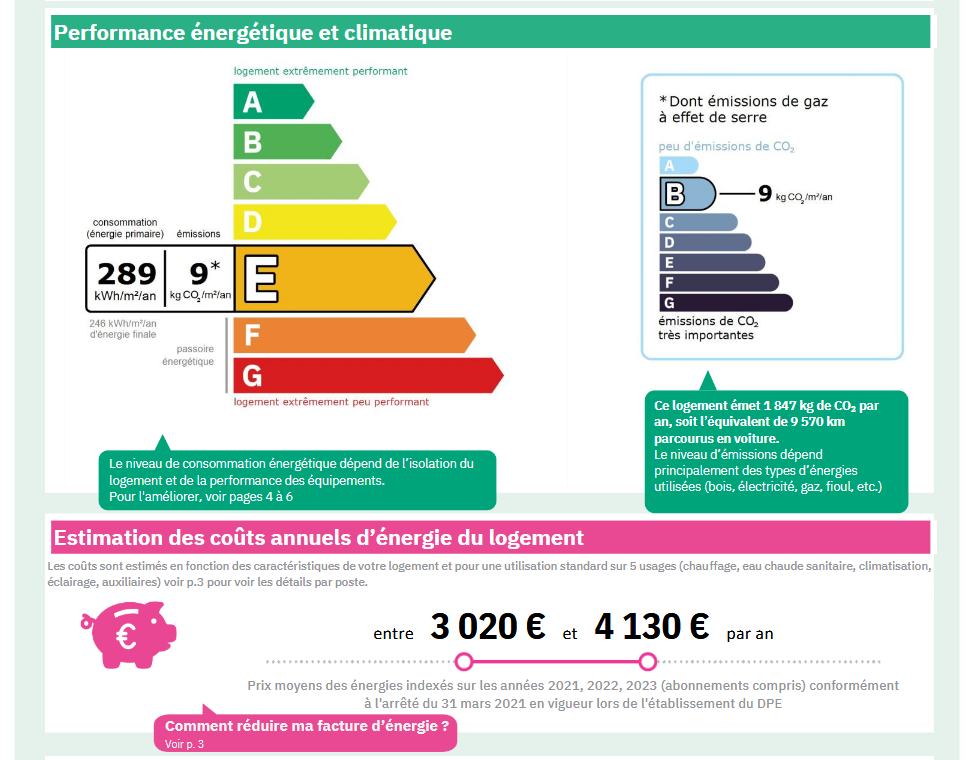 Consommations énergétiques - E - 289 kWh/m²/an.
