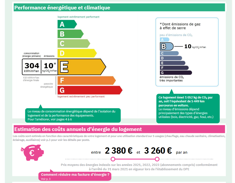Consommations énergétiques - E - 304 kWh/m²/an.