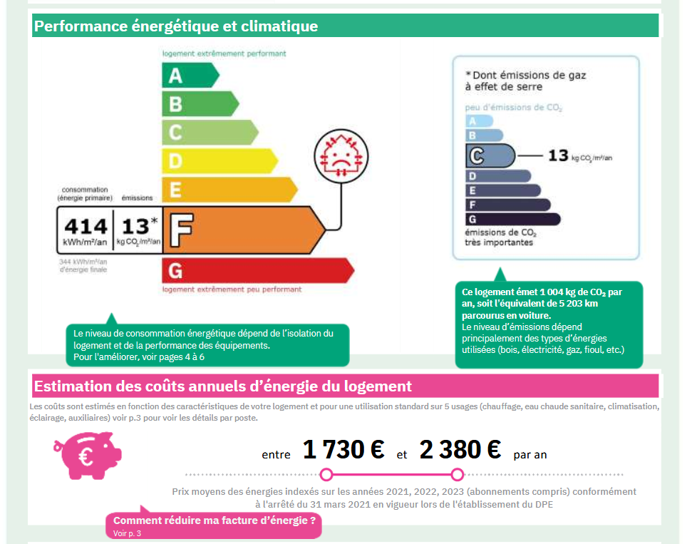 Consommations énergétiques - F - 414 kWh/m²/an.
