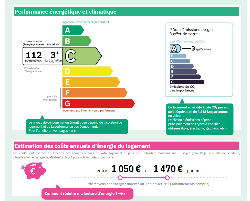 Consommations énergétiques - C - 112 kWh/m²/an.