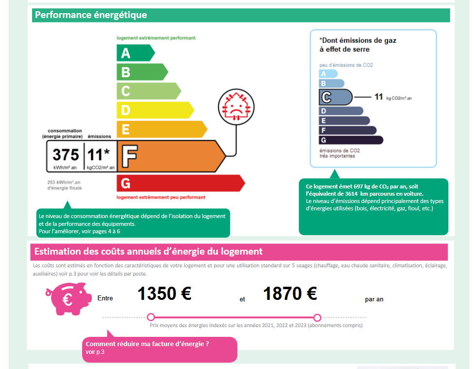 Consommations énergétiques - F - 375 kWh/m²/an.