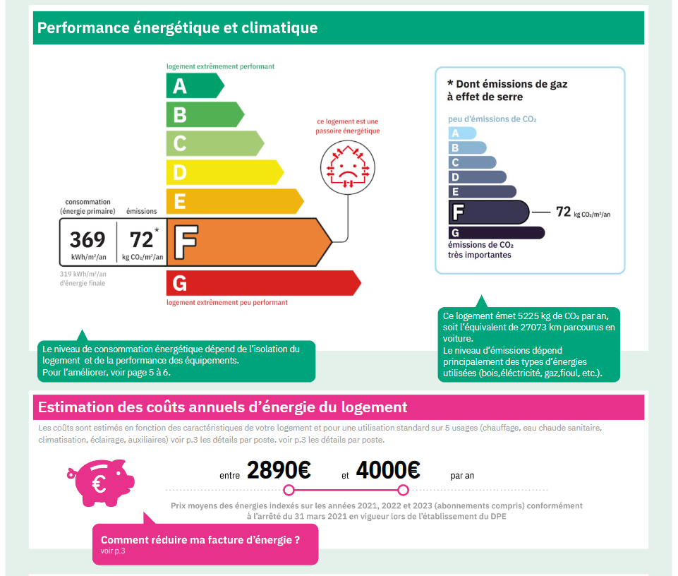 Consommations énergétiques - F - 369 kWh/m²/an.