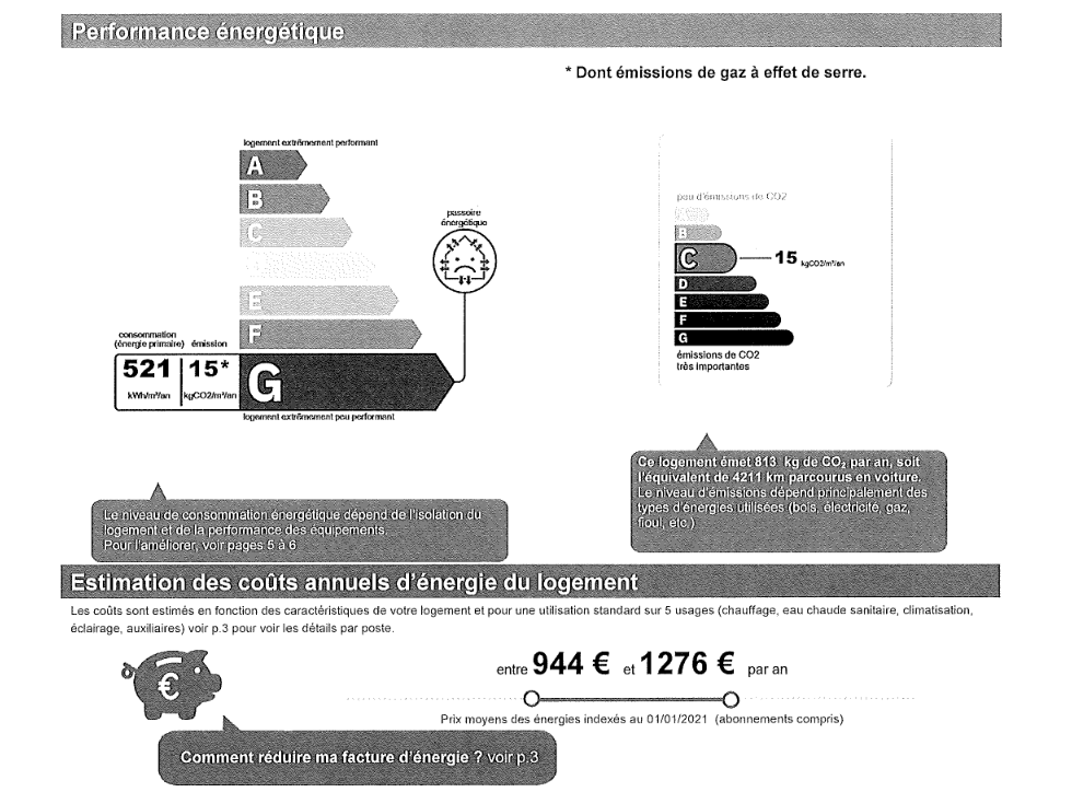 Consommations énergétiques - G - 521 kWhEP/m²/an.